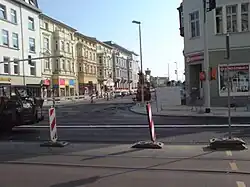| 7 | Karl-Liebknecht-Straße 127 | Hausdurchfahrt mit Deckenfresko | Dieser vierachsige Bau mit Pultdach an der Nordseite der Straße wurde 1885 errichtet und 1998 saniert. Das Deckengemälde auf Leinwand im Eingangsbereich ist aus dem Jahr 1896 und stammt von dem renommierten Dekorationsmaler Gustav Fürst. Das Gemälde zeigt eine allegorische Darstellung des Handwerks sowie verschiedener Künste (Malerei, Baukunst, Musik). Es stellt den durch Fleiß erworbenen Wohlstand dar und symbolisiert damit Glück des Hauses und seiner Familien. Hier handelt es sich um das einzige in Brandenburg vorkommende Deckengemälde auf Leinen in einem Mietwohnhaus.