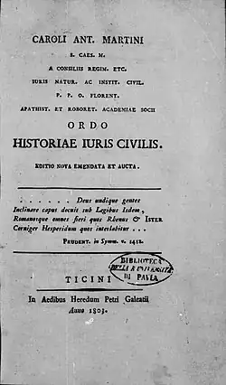 - Ordo historiae iuris civilis. eredi Pietro Galeazzi, Pavia 1803 (Latein, beic.it).