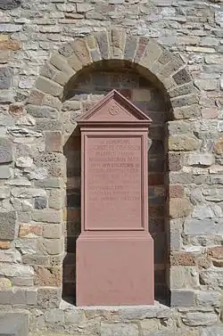 Gedenktafel für von Cohausen am „Gräberhaus“ des Saalburgkastells