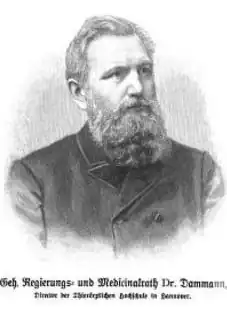 Karl Dammann studierte 1857/58 ein Semester Naturwissenschaften an der Universität Greifswald, danach 1858–1861 Tierheilkunde an der Tierarzneischule in Berlin, erlangte 1861 die tierärztliche Approbation als Tierarzt 1. Klasse.[1] Daneben belegte er an der Berliner Universität auch medizinische Fächer. 1861 bis Ostern 1863 studierte er Medizin in Greifswald, promovierte hier (ohne ärztliche Prüfung) 1862 zum Dr. med. 1863 wurde er Kreistierarzt in Cottbus und Spremberg und 1865 Dozent, ab 1869 Professor an der Landwirtschaftlichen Akademie Proskau. Nach dem Tod Moritz Fürstenbergs wurde Dammann 1873 an die Königliche Staats- und landwirtschaftliche Akademie Eldena und nach deren Auflösung 1877 an die Tierärztliche Hochschule Hannover berufen. 1881 ernannte man ihn zum Direktor der Tierarzneischule, ab 1887 Tierärztlichen Hochschule und schon 1881 zum Medizinalrat.