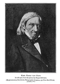 Karl Ernst Ritter von Baer Edler von Huthorn (* 17. Februarjul. / 28. Februar 1792greg.[1] auf Gut Piep (estnisch: Piibe), heute Gemeinde Rakke, in Gouvernement Estland, Russisches Kaiserreich; † 16. Novemberjul. / 28. November 1876greg. in Dorpat, Gouvernement Estland) war ein deutsch-baltischer Mediziner und Naturforscher, insbesondere Anatom, Zoologe, Embryologe, Anthropologe, Geograph und Forschungsreisender. Er wirkte als Hochschullehrer vor allem in Königsberg (Preußen) und St. Petersburg.