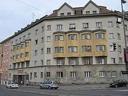 - Triester Straße 75–77 – Windtenstraße / Wien-Favoriten 1929–1930, Wohnhausanlage der Stadt Wien mit 53 Wohnungen. Die große Eckverbauung gegenüber der Spinnerin am Kreuz besitzt eine eigenwillige abgeschrägte Eckfassade, die durch zwei Spitzgiebel und zweigeschoßige Spitzerkergruppen geprägt wird.