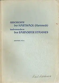 • Geschichte der Hartnack (Harteneck) insbesondere des Basdorfer Stammes. Zwei Bände, Elberfeld 1942.
