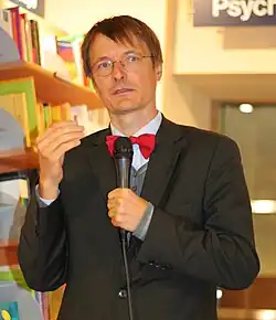 Karl Wilhelm Lauterbach (* 21. Februar 1963 in Birkesdorf, jetzt Düren) ist ein deutscher Gesundheitsökonom und Politiker (SPD). Der Mediziner ist seit Beginn der 16. Legislaturperiode im Jahr 2005 Mitglied des Deutschen Bundestages und war vom 8. Dezember 2021 bis zum 6. Mai 2025 Bundesminister für Gesundheit im Kabinett Scholz. Seit 21. Mai 2025 ist er Vorsitzender des neuen Bundestags-Forschungsausschusses.[1]
