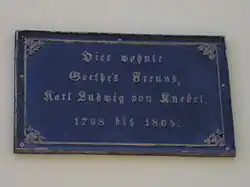 - ↑ Hellmuth von Maltzahn: Karl Ludwig von Knebel. Goethes Freund. Frommannsche Buchhandlung, Jena 1929, S. 160.