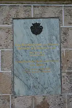 Grabmal des Karl Freiherr Michel von Tüßling und seiner Frau Ulrike an der Wallfahrtskirche Unschuldige Kinder, Heiligenstatt (Tüßling)