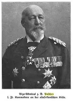 Im März 1884 erhielt Paschen als Kapitän zur See den Befehl über das Ostasiengeschwader, dass Anfang 1885 aber aufgelöst wurde. Ab Juni 1885 führte Paschen dann interimsweise das „ostafrikanische Kreuzergeschwader“, mit dem er im August 1885 Sultan Barghasch ibn Said von Sansibar zur Anerkennung des Schutzbriefs des Deutschen Kaisers über die von den Deutschen in Besitz genommenen Küstengebiete in Ostafrika zwang. Nach seiner Ablösung durch Eduard von Knorr Ende August und einem kurzen Einsatz in Westafrika kehrte Paschen Ende 1885 mit seinem Geschwader nach Deutschland zurück. In der Zwischenzeit war er am 1. Oktober 1885 zum Konteradmiral ernannt worden. Von Anfang April 1886 bis Januar 1889 war er Vorstand des Hydrographischen Amtes im Reichsmarineamt.