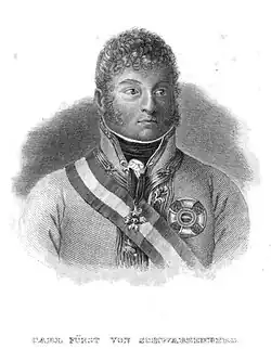 Fürst Karl Philipp Johann Nepomuk Joseph zu Schwarzenberg, auch Carl Philipp zu Schwarzenberg[1] (* 15. April 1771 in Wien; † 15. Oktober 1820 in Leipzig), war ein österreichischer Feldmarschall sowie Botschafter in Sankt Petersburg und Paris. Der Fürst von Schwarzenberg war der Oberbefehlshaber der verbündeten Streitkräfte gegen Napoleon in der Völkerschlacht bei Leipzig 1813.