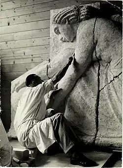 1. a b Paul Hofer: Die Kunstdenkmäler des Kantons Bern. Die Staatsbauten der Stadt Bern. Hrsg.: Gesellschaft für Schweizerische Kunstgeschichte (= Die Kunstdenkmäler der Schweiz. Band 19). Band 3. Birkhäuser Verlag, Basel 1982, ISBN 3-7643-1391-9, Die Rathausgruppe Ausstattung, S. 145-146 (513 S., unibe.ch [PDF; 66,6 MB; abgerufen am 12. April 2019] Originaltitel: Die Kunstdenkmäler des Kantons Bern. 1947.): „an der Nordfront, zwischen Staatskanzlei und Zwischentrakt, die ebenfalls überlebensgroße Sandsteinfigur des «Bauarbeiters» von KARL SCHENK;“
