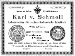 Insbesondere Lederputzmittel wurden gewöhnlich aus dem Ausland bezogen, zum Beispiel aus England. Karl Schmoll erkannte den heimischen Bedarf und entwickelte seine eigene Schuhcreme, die später zu einem der anerkanntesten Fabrikate in diesem Bereich wurde.