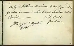 - ↑ Als Einträger in Göttingen 1778: Stammbuch des Schweden Johan David af Sandeberg (1759–1795), Blatt 134, in der Skara Stifts- och Landsbibliotek, Literatur: Hans Salander: Stamböcker i Skara Stifts- och Stifts- och Landsbibliotek. Skara 1980, S. 44–47; in Leipzig 1787: Stammbuch David von Scheidlin (1765–1811) im Germanischen Nationalmuseum, Signatur Hs. 140.342, Seite/Folium 55.
