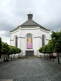Die Grundfläche bildet ein langgezogenes Achteck (Oktogon), das an seinen Ecken von markanten Strebepfeilern gegliedert wird. Ursprünglich befand sich an der Hauptseite zur Frankfurter Straße ein rechteckiger Vorbau, der die Treppenhäuser barg und den Haupteingang bildete. Diese Fassade wurde nach dem Krieg nicht rekonstruiert. Auch die mächtige Kuppel wurde im Krieg zerstört und durch eine schlichte Dachkonstruktion ersetzt. Das Innere verfügte ursprünglich über keine Emporen und wurde erst 1730 und 1874 um jeweils eine umlaufende Empore ergänzt. Auch die Emporen wurden nicht rekonstruiert. Bei der Renovierung 2020 wurde der Marmorfußboden samt Fußbodenheizung erneuert. Die Empore wurde vergrößert, so dass nun unterhalb Toiletten und eine Küche eingerichtet werden konnten und ein Aufzug Platz gefunden hat.