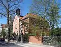 bezeichnet 1900 (Pfarrhaus) | historisierender Klinkerbau mit Sandsteingliederung, hölzerner Dachreiter mit Glocke, besonders die Schauseite mit aufwendiger und abwechslungsreicher Fensterrahmungen der variierenden Formate, Gartenseite mit Standerker, ortsgeschichtlich und baugeschichtlich von Bedeutung. | 09211901 |