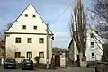 Wohnhaus (Nr. 15), Seitengebäude (Nr. 15a) mit nordöstlicher Pforte und rückwärtige Hofmauer eines ehemaligen Dreiseithofes | Altcoschütz 15; 15a (Karte) |