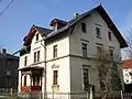 vor 1895 (Mietvilla) | zeittypischer repräsentativer Mietvillenbau um 1890 mit Elementen des Schweizerhausstils, Ansicht bestimmt durch weite Dachüberstände und dekorative Schwebegiebel, schlichte Putzfassade, Sockelzone Granitzyklopenmauerwerk, architektonische Gliederung und Balkone aus Sandstein, baugeschichtlich und stadtentwicklungsgeschichtlich von Bedeutung. | 09211923 |