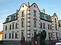vor 1897 (Mietshaus) | straßenbildprägender, repräsentativer Putzbau der 1890er Jahre mit Mansardwalmdach, zeittypisch historisierende Natursteingliederung, Lage und Eingangsbereich durch verbrochene Ecke und Mittelrisalit mit Turmaufsatz besonders hervorgehoben, baugeschichtlich und stadtentwicklungsgeschichtlich von Bedeutung. | 09211895 |