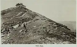 Lange Zeit hielten sich am Karnischen Hauptkamm nur einheimische Hirten und Jäger auf. Vor allem Gamsjäger und Wilderer drangen bei der Verfolgung des Wildes bis in die Gipfelregionen vor. Mit der Grenzziehung von 1753 zwischen der Republik Venedig und der Habsburgermonarchie[43] entlang des Karnischen Hauptkammes überquerten auch zunehmend Schmuggler das Gebirge. Von Süden wurde italienischer Wein und von Norden österreichischer Tabak und Zigaretten transportiert. Aus dieser Zeit existieren nur wenige Berichte über Gipfelbesteigungen. Als sicher gilt die Besteigung des Kollinkofels 1860 durch Anton Riebler den Älteren aus Mauthen bei einer Jagd auf Gämsen. Die touristische Erschließung begann Mitte des 19. Jahrhunderts, und etliche einheimische Jäger wurden nach der Reglementierung des Führerwesens zu autorisierten Bergführern. Die Wiener Alpinisten und Gründungsmitglieder des Österreichischen Alpenvereins Edmund von Mojsisovics und Paul Grohmann hielten sich oft am Karnischen Kamm auf, und es gelangen ihnen einige Erstbesteigungen. Am 30. September 1865 gelang Paul Grohmann, Nicolò Sottocorona und Hofer die Erstbesteigung der Hohen Warte. 1884 wurde die Sektion Gailtal des DuOeAV in Hermagor gegründet. Die junge Sektion errichtete 1885/86 die erste Naßfeldhütte. 1891 errichtete die Sektion Sillian mit dem Helmhaus das erste Schutzhaus im Westen des Karnischen Kamms. Die 1894 in Kötschach-Mauthen gegründete Sektion Obergailtal erbaute 1896 am Wolayer See die erste Schutzhütte.[44][45] In der Zeit bis zum Ersten Weltkrieg hatte die Erschließung des Gebietes ihren ersten Höhepunkt, doch durch den Ausbruch des Krieges wurde der Alpintourismus und der Fremdenverkehr schlagartig beendet. Der Karnische Kamm wurde zur Gebirgsfront. Nach dem Krieg wurden zerstörte Schutzhütten wieder errichtet, vor allem aber Frontwege miteinander zum Karnischen Höhenweg verbunden und durchgehend Schutzhütten und Notunterstände gebaut. Während des Zweiten Weltkriegs prägten erneut Krieg und Zerstörung die Region. Eine von der britischen Besatzungsmacht verhängte Sperrzone im Gail- und Lesachtal unterband nach dem Krieg jegliche Ansätze des Bergsteigens. Doch auch nach deren Aufhebung begann die Wiederbelebung des Bergsteigens am Karnischen Kamm nur schleppend, da die Stützpunkte für Alpinisten fehlten. Als Folge war der Karnische Höhenweg immer mehr dem Verfall preisgegeben. Ab 1970 setzten sich die Dolomitenfreunde mit Hilfe des Österreichischen Alpenvereins für die Instandsetzung des Karnischen Höhenweges und der Hütten ein. Bereits sechs Jahre später war der Weg als durchgehende Verbindung von Sillian bis Arnoldstein fertiggestellt und wurde offiziell seiner Bestimmung übergeben.[46]