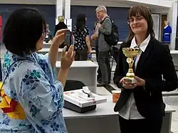 - ↑ http://www.japantimes.co.jp/news/2015/06/29/national/pole-becomes-shogi-queen-rare-move-foreigner/#.VzYMChzkb0p