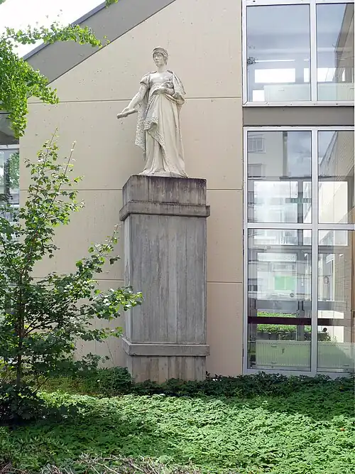 In den 1970er und 1980er Jahren wurde die Schule mehrfach erweitert. 1998 konnte die Karolinenstatue von 1887 wieder im Eingangsbereich der Schule aufgestellt werden.[15] 1999 wurde am Gymnasium ein bilingualer Zweig der Fachschaft Englisch eingerichtet, um den Schwerpunkt Fremdsprachen weiter zu stärken. Ab 2000 erfolgte auch der weitere Ausbau des Schwerpunktes Mathematik und Informatik.
