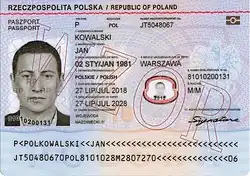 Ein polnischer Pass, der zum Grenzübertritt berechtigt und die polnische Staatsbürgerschaft sowie die Identität des Inhabers bestätigt.[1]