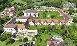 - ↑ a b c Lt. Infotafel "Klosterkirche: Barocke Pracht, Armenspital, Restaurierung" vor Ort; eingesehen am 11. Juni 2017