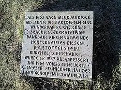 - ↑ a b c d Thea Herfeld: Gott führet seine Kinder wohl ... Denkmal für die gute alte Kartoffel auf dem Hasenknüll. In: 14 Tage Göttingen (Zeitschrift für Fremdenverkehr, Heimatkunde, Wirtschaft und Kultur), Nr. 22, 16.–30. November 1961, S. 9.