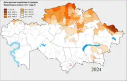 - ↑ as of April1, 2023 - Agency for Strategic planning and reforms of the Republic of Kazakhstan Bureau of National statistics. Abgerufen am 25. November 2023 (englisch).