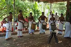 Trommelensemble Chenda vadyam bei einem Hindu-Festival im Distrikt Kasaragod