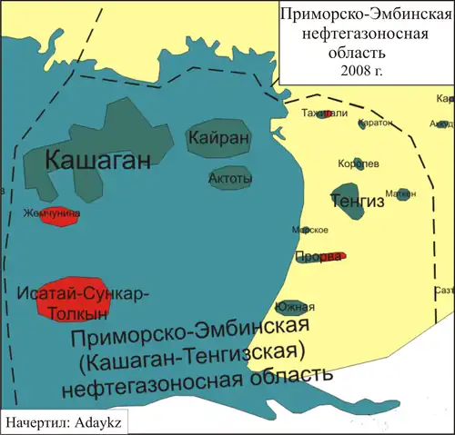 Die Erdölproduktion in Kaschagan von Januar bis August 2020 war vergleichsweise hoch mit 10,4 Millionen Tonnen, in Karatschaganak wurden 8,2 Millionen Tonnen und in Tengiz 18,2 Millionen Tonnen Erdöl produziert.[7] Die Produktion stieg bis 2024 auf 17,4 Millionen Tonnen, während 17,8 Millionen Tonnen für das Jahr 2025 angestrebt werden.[8]