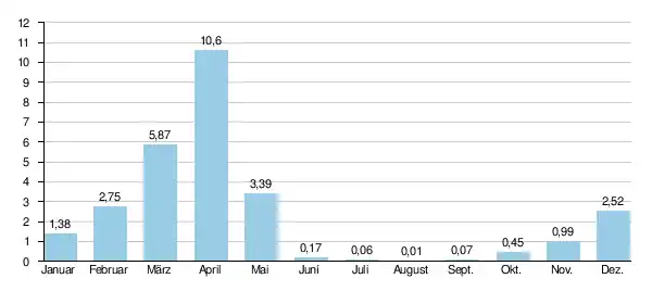 Mittlerer monatlicher Abfluss des Kaschan (in m³/s) am Pegel Babulai