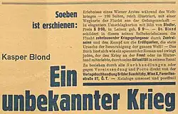 Werbeanzeige für Kaspar Blonds Buch „Ein unbekannter Krieg“ (1931)