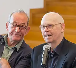 Kasper König mit Claes Oldenburg auf einer Pressekonferenz im Juni 2012 zur Eröffnung der Ausstellung Claes Oldenburg – The Sixties im Museum Ludwig