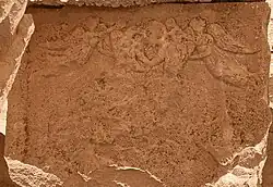 Übersetzung: In Zeile eins ist noch der dem Septimius Severus verliehene Siegerbeiname Arabicus lesbar, den er seit 195 n. Chr. trug, in Zeile zwei ist das Cognomen des Caracalla Antoninus erkennbar und in Zeile drei ein Teil des Titels Consul, der vielleicht in Zusammenhang mit dem Konsulat des Legionslegaten Quintus Anicius Faustus steht. Eradiert worden sind die ersten drei Buchstaben der Legio III Augusta pia vindex.[83]