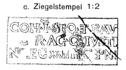 | Claudius Iustinus[32] | Centurio legionis der Legio XXII Primigenia, Praepositus numeri | um 159/160 n. Chr.? | Wurde durch mindestens zwei Ziegelstempel bekannt. Einer stammte aus dem Bad des Altstadtkastells, ein zweiter aus einem Nebengebäude des Wp 7/6.[30] |