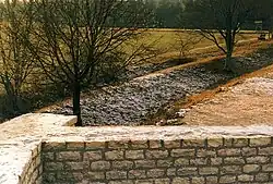 | Erhaltungszustand | Wehrmauer teilweise freigelegt und teilkonserviert, Gräben und Straßentrasse nach Süden deutlich sichtbar. |
