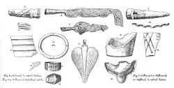 Als Streufunde fanden sich Toiletten-, Schmuck- und Trachtgegenstände wie Nadeln und Fibeln. Doch auch Waffen und militärische Ausrüstungsgegenstände wurden geborgen.[34]