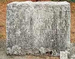 - ↑ RIU 3, 865 = B. Lörincz, Die römischen Hilfstruppen in Pannonien während der Prinzipatszeit. I: Die Inschriften (RHP). Wien 2001, 434.