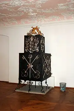Kastenofen aus Eisenblechen in der Propstei Aflenz