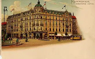 Der Gastwirt und Weinkenner Heinrich Kasten (* 27. Oktober 1821 in Kolenfeld bei Wunstorf; † 10. Februar 1893 in Hannover) mietete 1856 am Theaterplatz 9 ein Haus, das er 1859 käuflich erwarb.[1] Das Gebäude nahe dem königlichen Hoftheater richtete er als Hotel ein. Es wurde Kastens Hotel genannt und entwickelte sich schnell zum Mittelpunkt des hannoverschen gesellschaftlichen Lebens. Unter anderem tagten in ihm jeden Samstag die Mitglieder des 1859 bis 1867 bestehenden, von Rudolf von Bennigsen geführten Deutschen Nationalvereins. Später nutzte Kaiser Wilhelm II. das Hotel für Zusammenkünfte in seiner Eigenschaft als Chef der in Hannover stationierten Ulanenregimentes und als Protektor des Johanniterordens. Auch bei Reitervereinen, Militärpersonen und Besuchern der Oper wurde das Lokal beliebt. Namhafte Übernachtungsgäste waren Paul von Hindenburg (ab 1866) und Theodor Fontane (1880), Enrico Caruso (1911) u. a. Julie und Ludwig Windthorst feierten in dem Hotel 1888 ihre Goldene Hochzeit.[2]