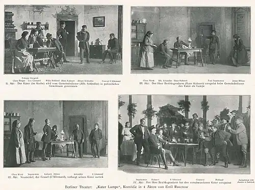- Emil Rosenow: Kater Lampe. Komödie in vier Akten. Verlag G. Richter Theater u. Musikverlag, 1927