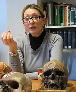 Ferner betreibt sie Feldforschung an zwei Grabungsstätten in Griechenland. 2019 publizierte sie eine virtuelle Rekonstruktion des Schädelfragments Apidima 1, das bereits 1978 in den südgriechischen Apidima-Höhlen entdeckt, jedoch jahrzehntelang keiner bestimmten Art zugeordnet worden war. Die am Computer erstellte Rekonstruktion ergab, dass der Schädel „eine Mischung aus modernen und primitiven Merkmalen“ des Homo sapiens aufweist. Beachtung über die naturwissenschaftlichen Fachzeitschriften hinaus fand insbesondere die Datierung des Fossils Apidima 1,[4][5] die ein Alter von 210.000 Jahren ergab.[6] Sollten Zuordnung und Datierung korrekt sein, wäre dieser Fund der älteste Beleg für die Anwesenheit des Homo sapiens in Europa.