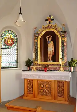 - Holzstatue des Heiligen Sebastian (Kapelle Sankt Sebastian, Oberbezau)[6][3]