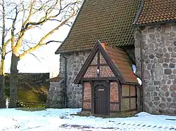 Die Kirche wurde im Jahre 1240 durch den Ritter Iwan von Bliedersdorf aus der Adelsfamilie der „von Bliedersdorfs“ erbaut, nachdem er an den „Stedinger“ Kämpfen am Unterlauf der Weser teilnahm. Die Kirche ist vollständig mit Feldsteinen erbaut, die auf den umliegenden Äckern anfielen. Die Mauern sind weiß gekalkt. Die Bauweise der Kirche mit ihren massivem Mauerwerk und den kleinen Fenstern lässt den Schluss zu, dass die Kirche auch als Verteidigungsanlage gedacht war. Die Position leicht erhoben über dem Rest des Dorfes unterstützt diese Hypothese. Im Jahre 1700 wurde auf der Eingangsseite ein Brauthaus in Fachwerkbauweise angesetzt.