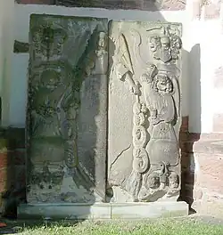 Entlang den Mauern der Kirche fanden die bereits erwähnten Grabsteine Aufstellung, es handelt sich dabei in der Mehrzahl um Vertreter der Familien von Boyneburg und von Witzleben. Auch eine Verwandte des Magdeburger Ratsherren Otto von Guericke, Catarina Guericke, verstarb hier im Jahr 1607. Als schönstes Bildwerk wird der Stein der 1588 verstorbenen Amtsschösserin Emilia Leonhardt gepriesen.