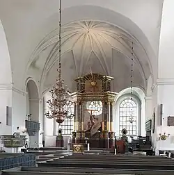 Die erste Orgel wurde 1751 in der Kirche eingebaut, von den Orgelbauern Jonas Gren und Petter Strahle. Dieses Instrument, welches deutliche französische Einflüsse zeigte, wurde 1863 von dem Orgelbauer Per Larsson Åkerman reorganisiert und 1909 durch den Orgelbauer Akerman & Lund neu errichtet und erweitert. 1938 wurde das Instrument mit pneumatischen Trakturen ausgestattet. Das Instrument wurde bei dem Brand von 1990 zerstört.