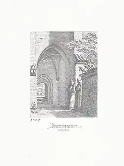 Leicht idealisierte Darstellung des gotischen Klostereingangs aus dem Lübecker ABC von Carl Julius Milde, 1857