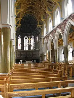 Die Kathedrale wurde aus Scrabo-Sandstein aus schottischen Steinbrüchen errichtet. Sie ist eine dreischiffige Basilika ohne Querhaus. Das Langhaus umfasst sieben Joche. Der einjochige Chor mündet in eine Apsis. Die Seitenschiffe sind mit je sechs, der Obergaden mit acht Buntglasfenstern versehen. In der Apsis befinden sich fünf Bildfenster mit geometrischem Maßwerk. Die Seitenschiffe sind mit einfachen Mosaikböden versehen. Die Stützen ihrer Pultdächer sind in durchbrochener Arbeit gefertigt.