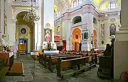 Das Innere enthält Gemälde, Grabinschriften, Gedenktafeln, alte Möbel, Wandmalereien, Skulpturen, Basreliefs, Monogramme, Stempel und weiterer architektonischer Dekor. Einige Gemälde wurden umgearbeitet oder restauriert, einige stammen auch von anderen Kirchen und wurden nach Luzker gebracht. Die ältesten stammen aus dem 18. Jahrhundert und wurden von unbekannten Künstlern hergestellt. Auf einigen Gemälden sind noch Spuren der Nachbehandlung geblieben, was man auf den Heiligenbildern von Sankt Franziskus, St. Hieronymus, "Gegeißelter Christus" u. a. erkennen kann. Es gibt auch Bilder, die für die Kirche und ihren konkreten Standplatz gemalt wurden. Die ältesten davon wurden von K. Villani, einem italienischen Kunstmaler 1801 gemalt. In der Sakristei sind noch andere Kirchen von Luzk dargestellt: Bernhardiner, Dominikaner, Karmeliter und Trynitarer.