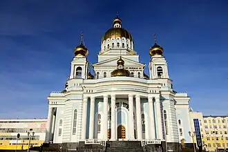 Die Kathedrale des Hl. Rechtschaffenen Theodor Uschakow ist eine Kreuzkuppelkirche, die im Empire-Stil erbaut wurde. Sie ist 58 m hoch.[3] Das Kreuz ist zusätzlich über 4 m hoch, so dass die Gesamthöhe 62 m beträgt. Die Kathedrale bietet Platz für 3.000 Besucher. Sie verfügt über vier Glockentürme mit insgesamt zwölf Glocken, die in Tutajew hergestellt wurden. Die größte Glocke wiegt 6 t, die Größe der Glocken nimmt immer um die Hälfte ab. Die Kuppeln wurden in Wolgodonsk unter Verwendung von Titannitrid-Keramik erstellt.[4] Die Hauptkuppel hat 12 m Durchmesser. Die vergoldete Ikonostase, die von dem Maler Igor Schemyakin aus Samara geschaffen wurde, ist in drei Teile gegliedert: einen mittleren Hauptteil, der Theodor Uschakow gewidmet ist, einen rechten Teil für Seraphim von Sarow und einen linken für die mordwinischen Märtyrer. Die Innenwände der Kathedrale wurden bis Juli 2011 bemalt. Im Untergeschoss der Kathedrale befinden sich auch eine Sonntagsschule, ein Konferenzsaal, ein Baptisterium, ein Refektorium und die Kathedralbibliothek.