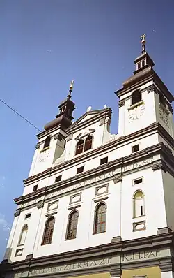 Das Kirchengebäude ist die erste rein barocke Kirche in der heutigen Slowakei und war ursprünglich ein Teil des Gebäudekomplexes der alten Tyrnauer Universität, daher auch die alternative Bezeichnung Universitätskirche.[1] Sie wurde von Jesuiten erbaut und gilt als das größte und künstlerisch bedeutendste Bauwerk der Gegenreformation in der Slowakei.[2] Der Bau wurde vom Palatin Nikolaus Esterházy finanziert und 1629 bei den italienischen Architekten Antonio und Pietro Spazzio in Auftrag gegeben. Die noch nicht fertiggestellte Kirche wurde bereits 1637 geweiht.